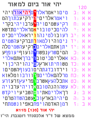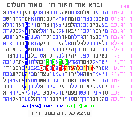 from the Light of Hashem). Also noteworthy is the passive form נברא (was created). Directly below this, a minimal skip 2 for אור (light) gave the expression מאור