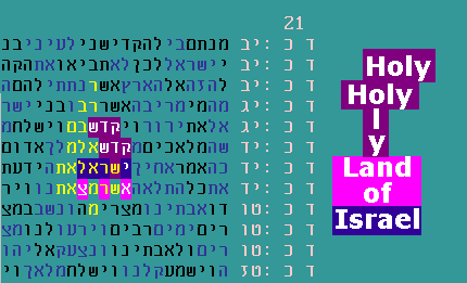 July 16, 2015 - Holy land of Israel Lately we've been studying "triplets" - collections of three words that commonly occur in the Torah and also occur in a code. Here is one triplet that stands out, involving the words "holy", "land" and "Israel":