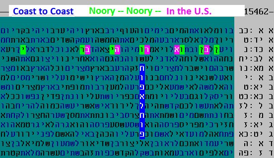 [ Update on July 24, 2016: several valid words that appeared in the future tense have been removed in accordance with my policy of taking great care not to over-state unproven results ]. This is a new kind of code for this web site. Most of the words are not a-priori (given in advance) and yet the method itself is systematic and a-priori. Words must be from a standard source such as all Tanach words. Words are not accepted unless they meet a low probability threshold for appearing so close to the axis. Words can not be diagonal. Words must repeat unless they meet an even smaller probability threshold. These are not arbitrary rules; rather they screen out words that could easily appear in many tables in order to focus on a smaller set. That smaller set is likely to be rich in intentionally-placed words. The significance of such a constrained table can be measured in a way similar to the method described in this peer-reviewed paper for measuring long phrases. In that case and in this case, the words are not a-priori but are highly constrained, and it is possible even with the aid of random look-ups in an English-only dictionary (or English Tanach) to estimate the unlikelihood of finding such "fitting" words among these highly constrained words. In this new case, we are interested only in the number of fitting words, rather than estimating the strength of each word's fit. And of course we factor in the number of non-fitting words as well. While much of this is subjective, the result can be tested against the opinions of a large enough review group to make it objective. Early estimates of these measures indicate that the above result is more significant than 1:100. Note that we can not say which words are for sure significant, but we can say that the overall table is significant because it has many more fitting words than expected. June 8, 2016 - Real codes and what to learn from them I'm going to try to explain some of the most important points about codes in this section, using one of my favorite code series. This series was copied from Doron Witztum's Hebrew web site (here and here). The starting codes are thanks to Rabbi Weissmandel who found them without a computer in the 1940s; with follow-on discoveries by Doron Witztum and Dr Moshe Katz, two codes pioneers in our generation. Here's the first: