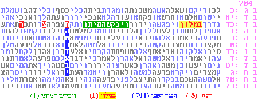 The yellow and green highlighted words in the top verse (Exodus 4:24),